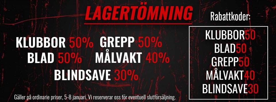 Vår partner Innebandykungen kör lagertömning i helgen (t.o.m 8/1). Bra rabatter på massor av produkter. Mer info finns på Innebandykungen.com Eken IBK 6 jan 2023